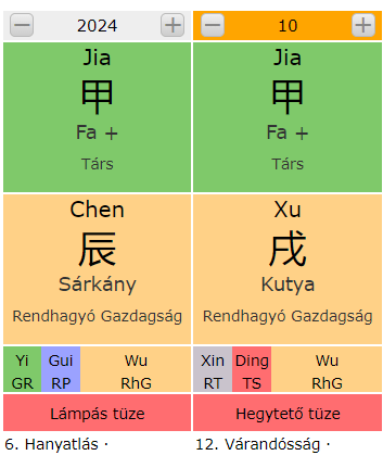 Szembetűnő, hogy a Yang Fa és a Kutyába és a Sárkányba a Yang Föld van. Ez a 2 meghatározó, erőteljes energia lesz jelen velünk ebben a hónapban.